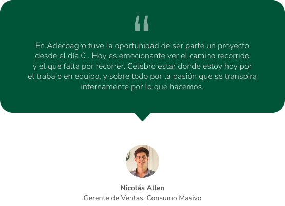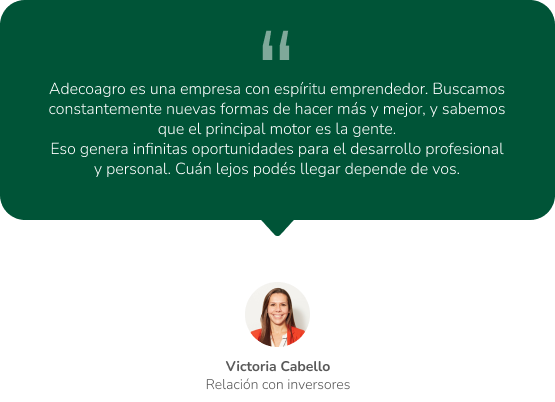 En Adecoagro tenemos pasión por lo que hacemos y buscamos hacer las cosas cada día mejor, en un entorno de excelencia.
